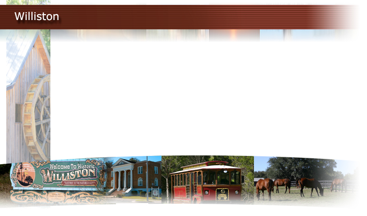 Welcome to WillistonNestled in the rolling hills of Levy County, surrounded by farms and horse country lies the picturesque rural community of Williston. As the "Gateway to the Nature Coast," this town of approximately 2,300 people offers much to residents and visitors alike. For nature-lovers it provides an abundance of outdoor recreational opportunities. For families, Williston offers a low crime rate along with employment opportunities and excellent local schools. Retirees can enjoy a laid-back lifestyle and low cost of living, as well as close proximity to larger cities such as Gainesville, Ocala, Orlando and Tampa with all their amenities. The temperate climate averaging 57 degrees in the winter and 82 degrees in the summer is a respite for folks wanting to escape the chilly northern temperatures in the winter and the sometimes extreme Florida heat in the summer. Its location inland from the coasts makes it a relatively safe haven from tropical storms and hurricanes. |